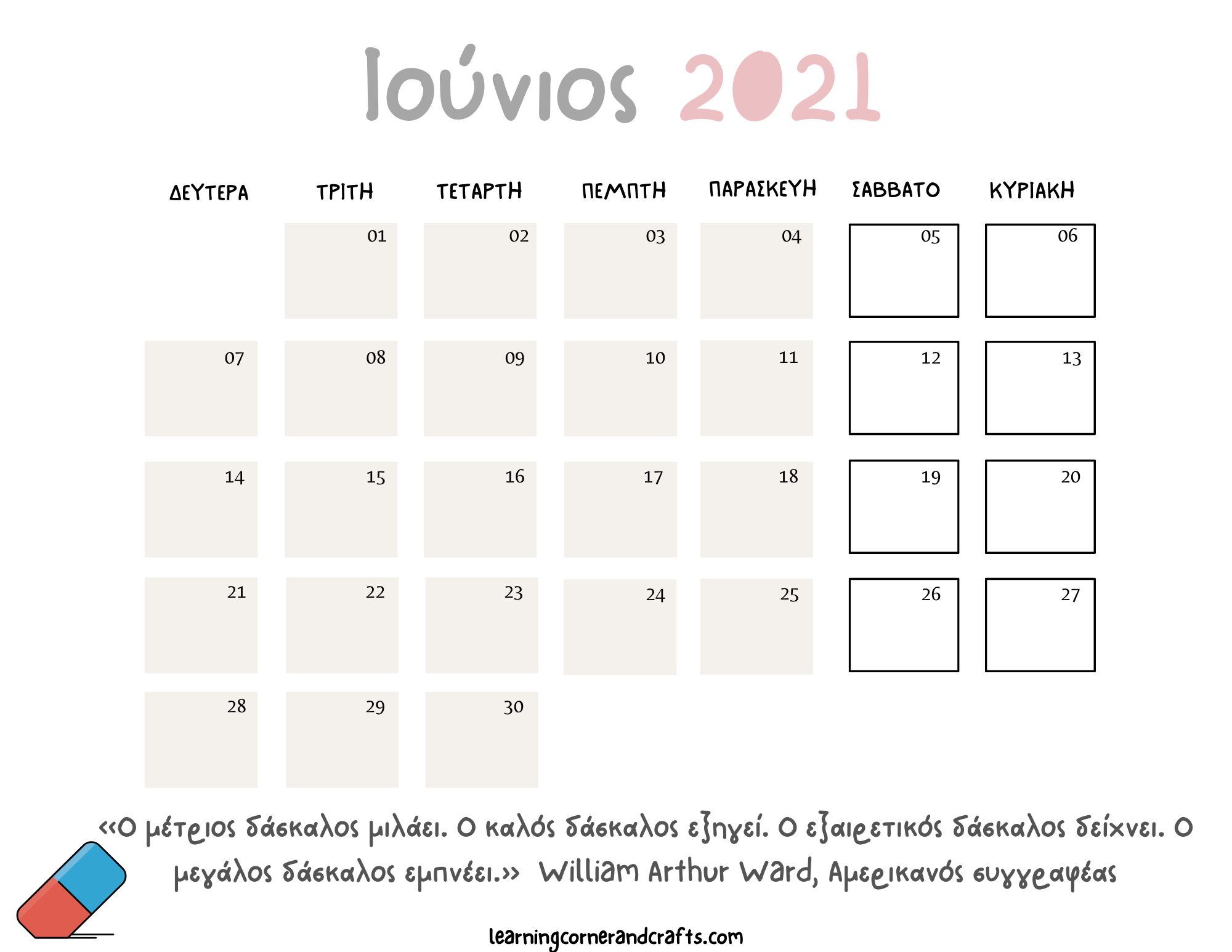 Ιούνιος – Δωρεάν Φύλλο Εργασίας