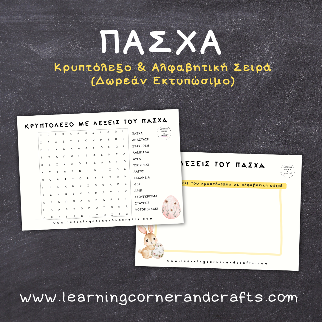 Οι λέξεις του Πάσχα: Κρυπτόλεξο & Δραστηριότητες (Δημοτικό) Εκτυπώσιμο κρυπτόλεξο με λέξεις του Πάσχα με δραστηριότητες λεξιλογίου και αλφαβητικής σειράς. […]