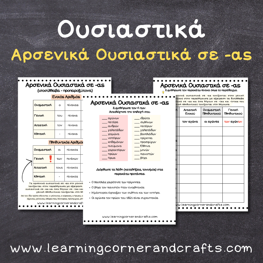 Εκτυπώσιμο Εκπαιδευτικό Υλικό – Αρσενικά Ουσιαστικά σε -ας – Ισοσύλλαβα – Ανισοσύλλαβα Το εκτυπώσιμο εκπαιδευτικό υλικό αφορά τα αρσενικά ουσιαστικά […]